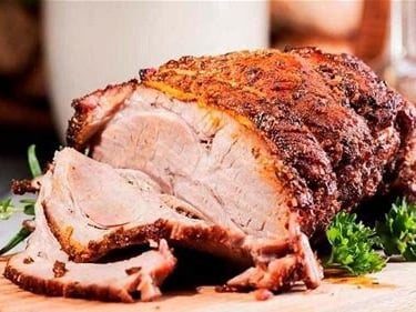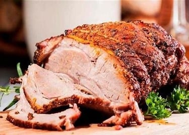Pernil horneado con especias que resaltan su sabor tradicional.