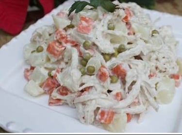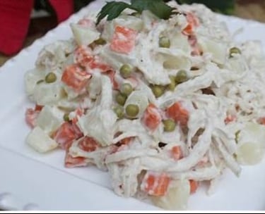 Mezcla fresca de verduras con toques dulces y cremosos. con pollo esmechado